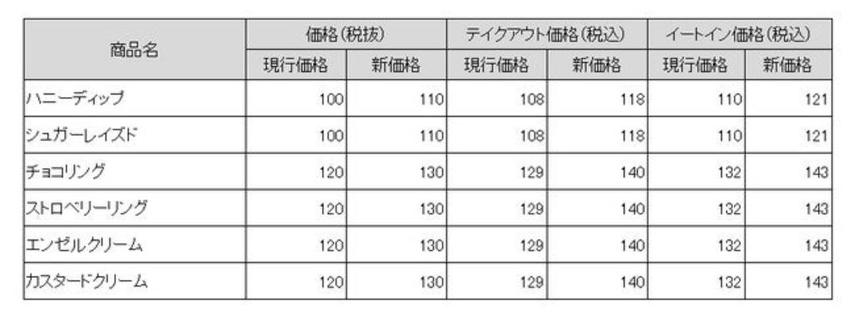 なお新価格はハニーディップ・シュガーレイズドが110円、チョコリング・ストロベリーリング・エンゼルクリーム・カスタードクリームが130円。ミスド、人気定番ドーナツ生地をリニューアル 価格も改定 - モデルプレス
