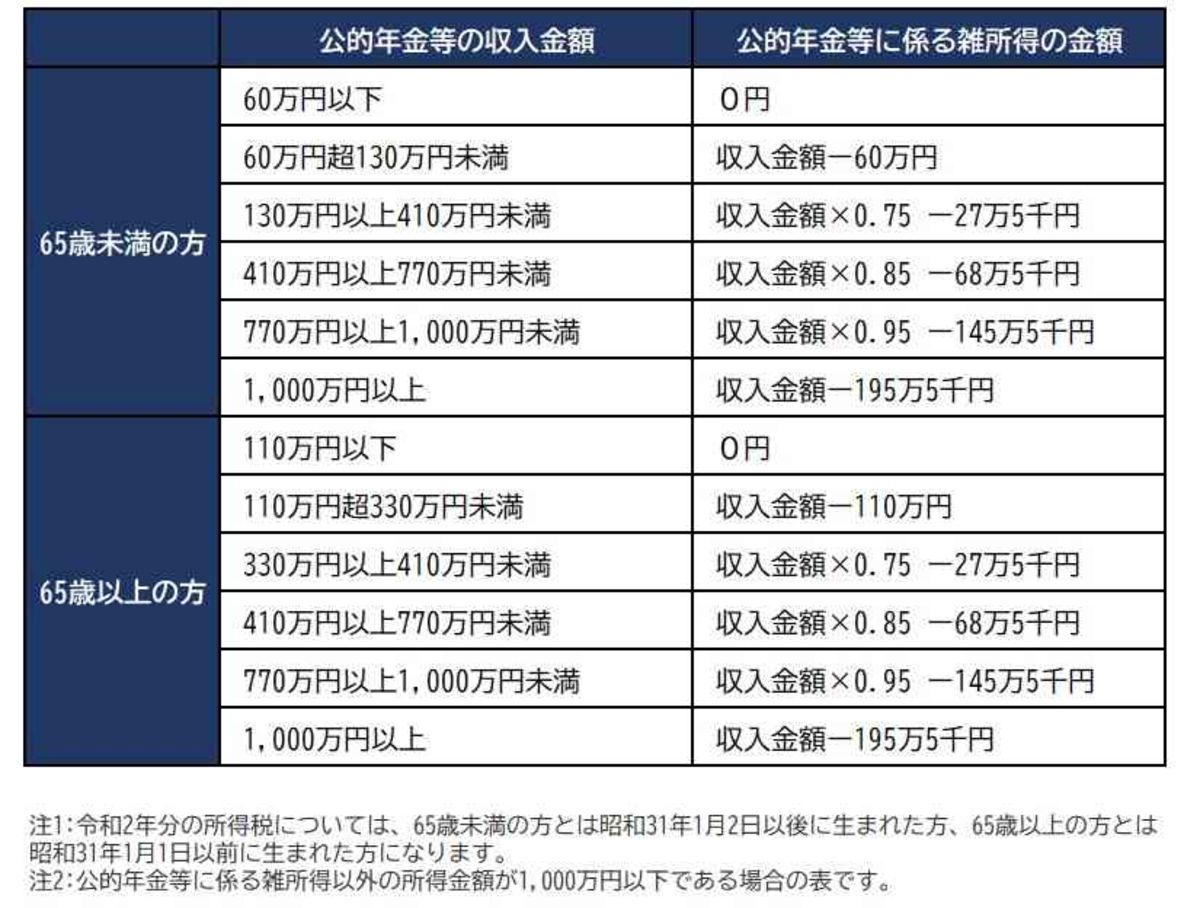 厚生労働省『令和元年度厚生年金保険・国民年金事業の概況』によると、重複のない公的年金受給者は、4040万人。厚生年金保険(第1号)受給者の平均年金月額は14万6000円となっています。 年金は「雑所得」。所得税と住民税が課税されます。税額計算のベースとなる所得金額は国税庁『公的年金等に係る雑所得の速算表』で簡単に計算でき、基本的に「公的年金等にかかる雑所得=年金受給額-公的年金等控除額」という計算になります。年金14万円「さらに税金かかります」衝撃的事実に若者が絶句 | 富裕層向け資産防衛メディア | 幻冬舎ゴールドオンライン