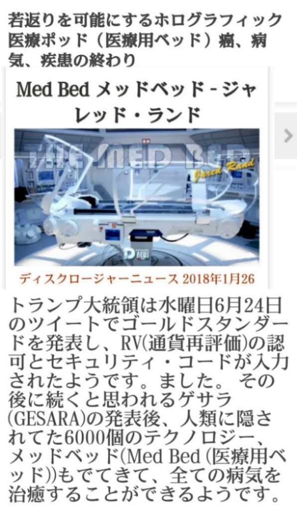 メドベッド!福岡、岐阜、北海道の病院にすでにメドベッドはありますので、今後国内のすべての病院に配置して新医療をしていきます!▶全国7拠点病院に臓器移植センターが開設されました!その実際は、臓器再生センターメドベットでしょう!この2年間で要員養成をしていたと思われますから、施設、要員それなりに準備は完了しているものと!既に2000年に岐阜県でも使い方講習始まっていました!2024年8月2日福岡、岐阜、北海道の病院にすでにメドベッドはありますので、今後国内のすべての病院に配置して新医療をしていきますpic.twitter.com/Lr2AGJUPeQ—isawanin2(@IZUJIN2)August1,2024全国7拠点病院に臓器移植センターが開設されました。その実際は、臓器再生センターメドベットでしょう。...メドベッド!福岡、岐阜、北海道の病院にすでにメドベッドはありますので、今後国内のすべての病院に配置して新医療をしていきます!▶全国7拠点病院に臓器移植センターが開設されました!