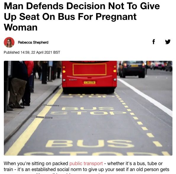 【海外発!Breaking News】「妊婦に席を譲らなかった僕は最低なのか?」男性の投稿が物議を醸す | Techinsight(テックインサイト)|海外セレブ、国内エンタメのオンリーワンをお届けするニュースサイト