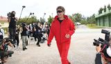 日本ハムの新庄剛志ビッグボスが8日、秋季キャンプが行われている沖縄県・国頭村のかいぎんスタジアムを訪問した。 大勢の報道陣が待ち構える中、午前8時48分に車で到着。真っ赤な上下のジャージに、先日インスタグラムに投稿していた赤い練習用シューズを履いて姿を現した。