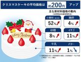 背景には、店頭価格ベースでも1.5倍に上昇した小麦粉(強力粉)のほか、イチゴなどのフルーツや砂糖、牛乳、鶏卵など原材料のほとんどが値上がりしていることがあげられる。 また、10%程度値上がりしたテイクアウト用の化粧箱や食品フィルムなどの資材費、さらに電気・ガス代、物流費なども高騰が続いており、前年価格から10%以上の大幅な値上げに踏み切ったケーキが目立った。他方で、前年から価格を据え置いたケーキもあり、商品の値付けに苦戦する様相もみられた。相次ぐ値上げ「クリスマスケーキ」にも 平均価格は約200円アップ、価格は平均3800円台 → 4000円台へ(帝国データバンク) - Yahoo!ニュース