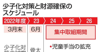 政府が「次元の異なる少子化対策」に充てる安定的な財源を、2024~26年度の3年間かけて確保する方向...