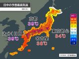 今日3日(土)も九州から東北の広い範囲で猛烈な暑さが続くでしょう。京都や大分県の日田では40℃に迫る予想です。熱中症には厳重に警戒してください。