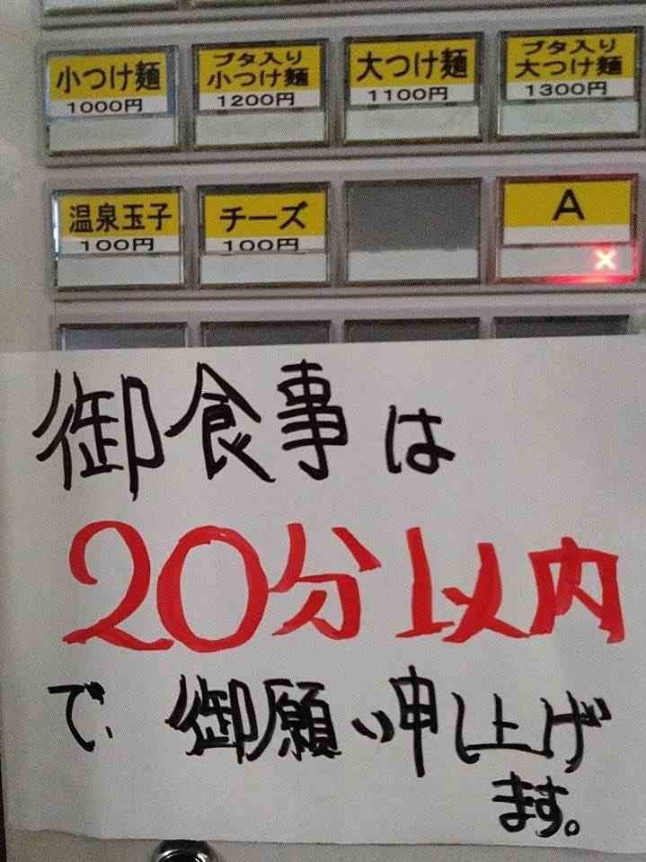 「ラーメン二郎 府中店です。最近、極端にゆっくり食べている方が増えまして、ロット乱れたりお店としても困っています。お食事は『最大』で20分以内にお願いします。店主 SNS担当者」