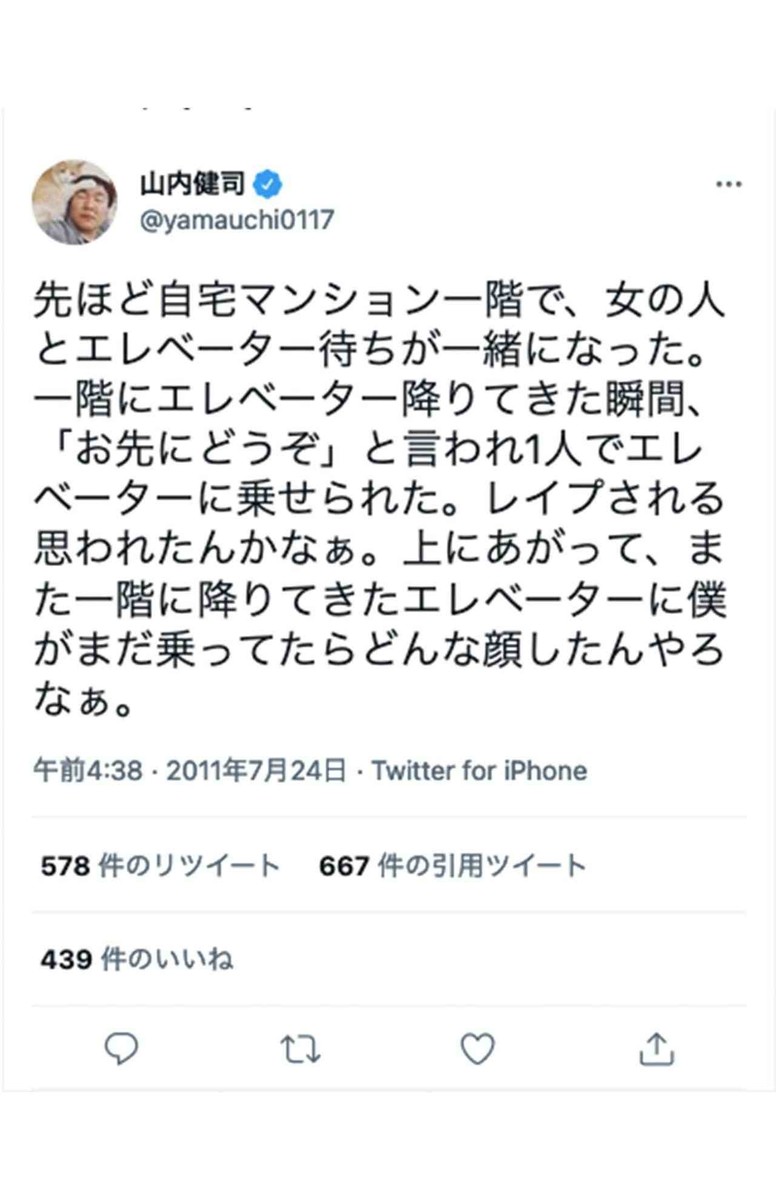 「じつは山内さんは、2022年に放送された『超無敵クラス』(日本テレビ系)で、このエピソードとほぼ同じ内容を語っています。この時は、自宅があった5階まで上がり、再度、1階まで降りたということでした。司会の指原莉乃さんをはじめ、出演者の女性からは、『怖い』と悲鳴が上がっていました。一方、山内さんはといえば、まったく気に留める様子はありませんでした」