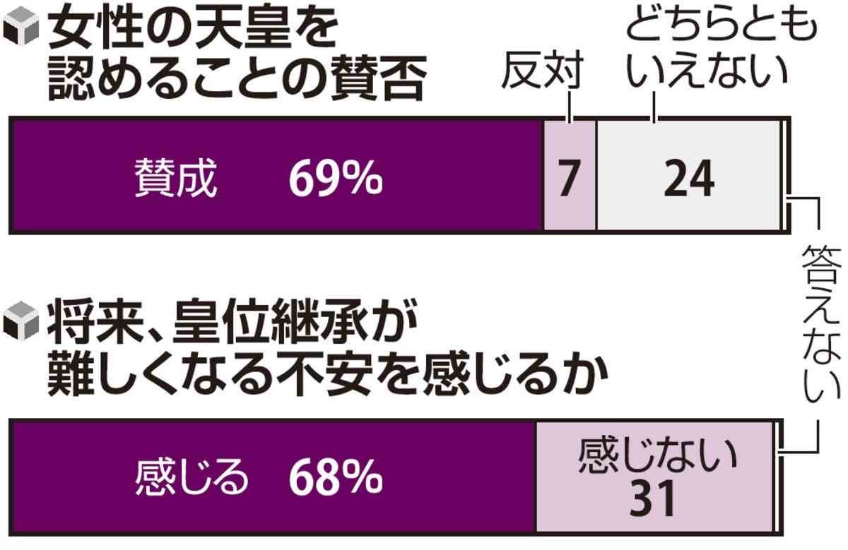 女性天皇「賛成」69%、将来の皇位継承「不安」68%…読売世論調査