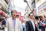 “巣鴨地蔵商店街を練り歩きしていた東京都知事候補鳥越俊太郎さんと歌手の森進一さん。かっこいい。商店街は歓声が響いていた。これからの選挙戦どんどん盛り上がる予感!。「暑いね。もうジャケット脱ごうよ」と鳥越さんと森さんが会話していた。”