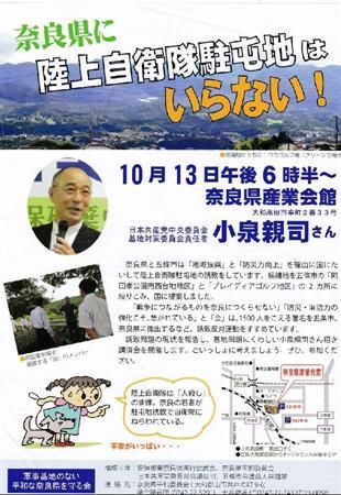 共産党奈良県会議員団などが、陸上自衛隊を「人殺しの訓練」と記したチラシを作成していたことが19日、明らかになった。 共産党は綱領に自衛隊の解消を掲げている。識者からは、防衛費を「人を殺すための予算」と発言した先月のケースと同様に、「自衛隊への侮辱だ」と批判する声が上がった。 「自衛隊を『人殺し』という生々しい言葉で批判するのはどうかと思う。自衛隊をなくそうと文字で扇動しているようなものだ。後で『説明不足だった』といわれても…」。自民党の奈良県議は厳しく批判する。 山間部が広がる南部に防災基地がない奈良県は、約10年前から大規模災害時への対応のため陸上自衛隊駐屯地の誘致を進めてきた。 平成23年の紀伊半島豪雨を機に、誘致への機運はさらに高まった。荒井正吾知事も「不測の事態に県民の生命と財産を守っていただくため、五條市への配置が必要だ」とし、国への要望の最重点項目とするなど力を入れている。 これに対し、共産党県会議員団は「自衛隊は国土の防衛が本来の仕事。基地が防災のために必要なら、地域の消防力を抜本的に強化すべきだ」とする見解をホームページに掲載。署名集めなど駐屯地誘致への反対活動を展開している。陸上自衛隊を「人殺しの訓練」と記したチラシ配る 共産党に批判 - ライブドアニュース