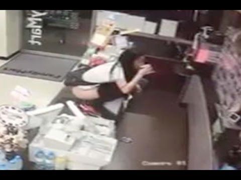 This was the bizarre moment a woman pulled down her knickers and took a pee in a cup on a shop counter in a corner shop - then DRANK it. Security cameras cau...