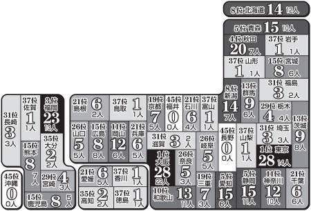 日本は初出場した1912年ストックホルム大会から12年ロンドン大会まで、個人種目で355個のメダルを獲得した。出生地別に見ると最多は東京都と大阪府の28個。福井、長野、沖縄の3県は1個も獲得していない。県民性がメダル獲得に与える影響はあるのか? ナンバーワン戦略研究所(東京・中野区)の矢野新一所長(67)に話を聞いた。歴史や風土が育んできた県民性が、活躍の要素の1つとなっているようだ。 ◆「なんくるないさー」沖縄県 今大会の男子重量挙げでは糸数が4位と健闘したが表彰台には届かなかった。メダルゼロについて「南国気質ですから、粘り強さがない。“なんくるないさー(何とかなるさ)”の精神が、しょうがないにつながっている」と指摘した。「持久力が大事な競技よりも、具志堅に代表されるボクシングのような瞬発系の方がメダルを狙える」と分析し、糸数の東京五輪でのメダル獲得に期待した。 ◆負けず嫌い 福井県 「なんで今までいなかったのか」と首をかしげる。「越前商人が有名で負けず嫌いな県民性。最も多く社長を輩出する県。15年の全国体力テストで小5、中2の男女ですべて1位ですから」と納得がいかない様子だが「商売で稼ぐように教育されているからではないか」と指摘。「貯金額は多いから、成功者が現れたら親が子どもをスポーツマンにさせるかもしれない。10年後にはメダル獲得数1位になっているかも」と予想。女子バドミントン山口のメダル獲得に期待した。 ◆寺子屋数1番 長野県 矢野氏は、教育熱心がゆえの低空飛行とみている。「江戸時代、信濃の国は寺子屋が一番多かった。明治時代も就学率が全国一。土地が狭いから親の跡を継ぐより、勉強して昇進するのが望ましいと言われてきた。だから、子供をスポーツ選手に育てていこうとする親があまりいない」。勉強優先の教育方針が影響していると指摘する。 今大会で県出身初のメダリストとなる可能性が高いのが、大町市出生のバドミントン女子シングルスの奥原だ。父圭永(きよなが)さんが高校教師、母秀子さんは栄養士という教育熱心な家庭に育った。兄大生さんは医学生、姉未来さんは教師志望。幼いころからバドミントン以外に、水泳、ピアノ、スキーを習っていた奥原は数学が得意で、大宮東(埼玉)時代は海外遠征しながらも学年上位をキープしていた。 矢野氏は「バドミントンなど、粘り強さが肝心な競技は長野県民に向いている」と言う。2度の膝のケガを乗り越え、持ち前の粘り強いフットワークが武器の奥原は「メダルが期待できる」と後押しした。 ◆急成長中 埼玉県 人口は700万以上だが、04年アテネ大会までメダル獲得はなく、08年北京大会でシンクロデュエットの鈴木が初めて銅メダルを獲得した。男子は今大会の競泳男子の瀬戸が初。「競争に弱い。社長や官僚が出てこない地域」と言い、男子の低調は人の良さがあだとなっているという。重量挙げの三宅ら女子の活躍が目立つのは「バブル時代にディスコで踊っていたのは埼玉か千葉の女性が多い。東京に追い付きたい気持ちが活躍につながった」とみる。 ◆5位タイ愛知県 「ケチな県民性」と関係があるという。「尾張商人と藩の影響が強い。尾張藩は豊かだったが、殿様から『無駄なお金使うな』と言われていた。商人も出費を控える。その考えから、30年ほど前まであまりお酒を飲まなかった」。シビアな金銭感覚がメダルへの執着を増すとし「メダルを取ったら良い生活ができると計算している」。今大会は豊田市出生の羽根田がカヌー日本勢初のメダリストとなった。 ◆「金」最多9 北海道 金メダル獲得数9個は福岡と並び最多タイ。その内訳はレスリングが5個、柔道が3個、陸上が1個。そのうち7個は、柔道女子の恵本、上野ら旭川市周辺の内陸出身者が獲得している。男子6個、女子3個の比率について「内陸は開拓期から男女同権。性別関係なく働いたことが影響した」と分析。「開拓者精神がある内陸出身者にはスポーツも商売も大物が出る」と話していた。立ち上がれ!0メダル県、出生地別メダル獲得数公開(日刊スポーツ) - リオオリンピック特集 - Yahoo! JAPAN