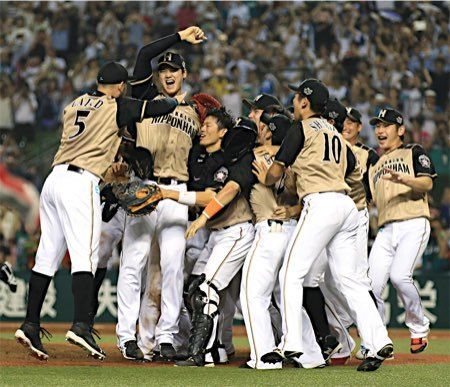 西武―日本ハム。パ・リーグ優勝を決め、喜ぶ日本ハムの大谷(左から2人目)ら。日本ハムの優勝は4年ぶり7度目。大谷が西武を1安打に完封して、1―0で下した=28日、西武プリンスドーム大谷完封、日本ハムがV=プロ野球(時事通信) - Yahoo!ニュース