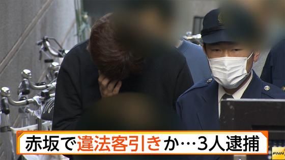 東京・赤坂で違法な客引きの疑いで飲食店経営者の男ら3人逮捕:東京・赤坂で、違法な客引きをした疑いで、飲食店経営者の男ら3人が、警視庁に逮捕された。...