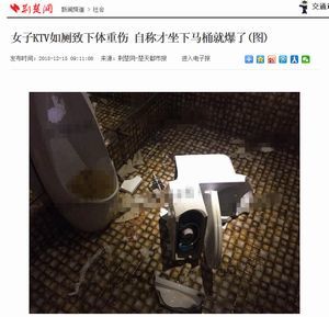 カラオケ店のトイレで便器が爆発し女性が重傷 店側「爆発ではない」 中国 - ライブドアニュース
