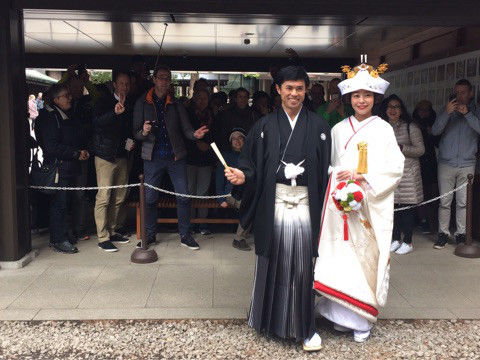 ピーヤ! 結婚式でした 明治神宮でお互いの家族だけで 海外からの観光客の方々には和装は珍しいらしく 写真をたくさん撮られました 寒くないのか心配されましたが普段もっと薄着なので。。 こんな感じで明治神宮内を歩きます 神主様に教えて頂いた明治天皇の歌 「嵐ふく 世にも動くな 人ごころ いわほに根ざす 松のごとくに」 (意味) 嵐が吹きすさぶような激動の世の中にあっても 巌(大きな岩)にどっしりと根ざした松のように しっかりとした信念を持って心を動かされないようにしなさい とても心に響く素敵な歌です 何事にも動じないどっしりした夫婦目指して精進したいと思います小島よしお『結婚式 明治神宮』