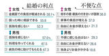離婚の原因として“性格の不一致”や“価値観の違い”はよく挙げられる項目だが、具体的に何なのか。1千人アンケートで「離婚をしたいと思ったことがあるか」と聞いた。「ある」と答えた人の「結婚による不便」で割合の高いものを調べてみると、「相手の親・親族の付き合いが面倒」が39.2%と、最も高い。次に高いのが「家事の負担が増える」で36.6%だ。リクルートブライダル総研究長の鈴木さんは言う。 「夫婦ふたりは仲が良くても、その周囲のことが面倒だと感じている人が男女共に増えている」離婚の原因 1千人アンケートから見えた本当の理由 〈AERA〉|dot.ドット