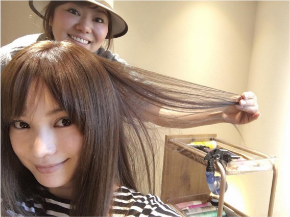 蛯原は「もうすぐ、お仕事始まるから今日はカラー&トリートメントへ」と、まもなく仕事復帰することを明かし、新しいヘアカラーになったショットを公開。