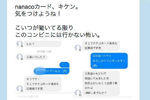 その後、今年1月16日になって、メッセージを送られた女性とみられる人物が、当時のやり取りをうつした画面をツイッターで公開。さらに、「nanacoカード、キケン」とカードの申し込みの際に「個人情報」を盗み見られた可能性を示唆したところ、ネット上で「ナンパ目的だった?」などと話題になった。