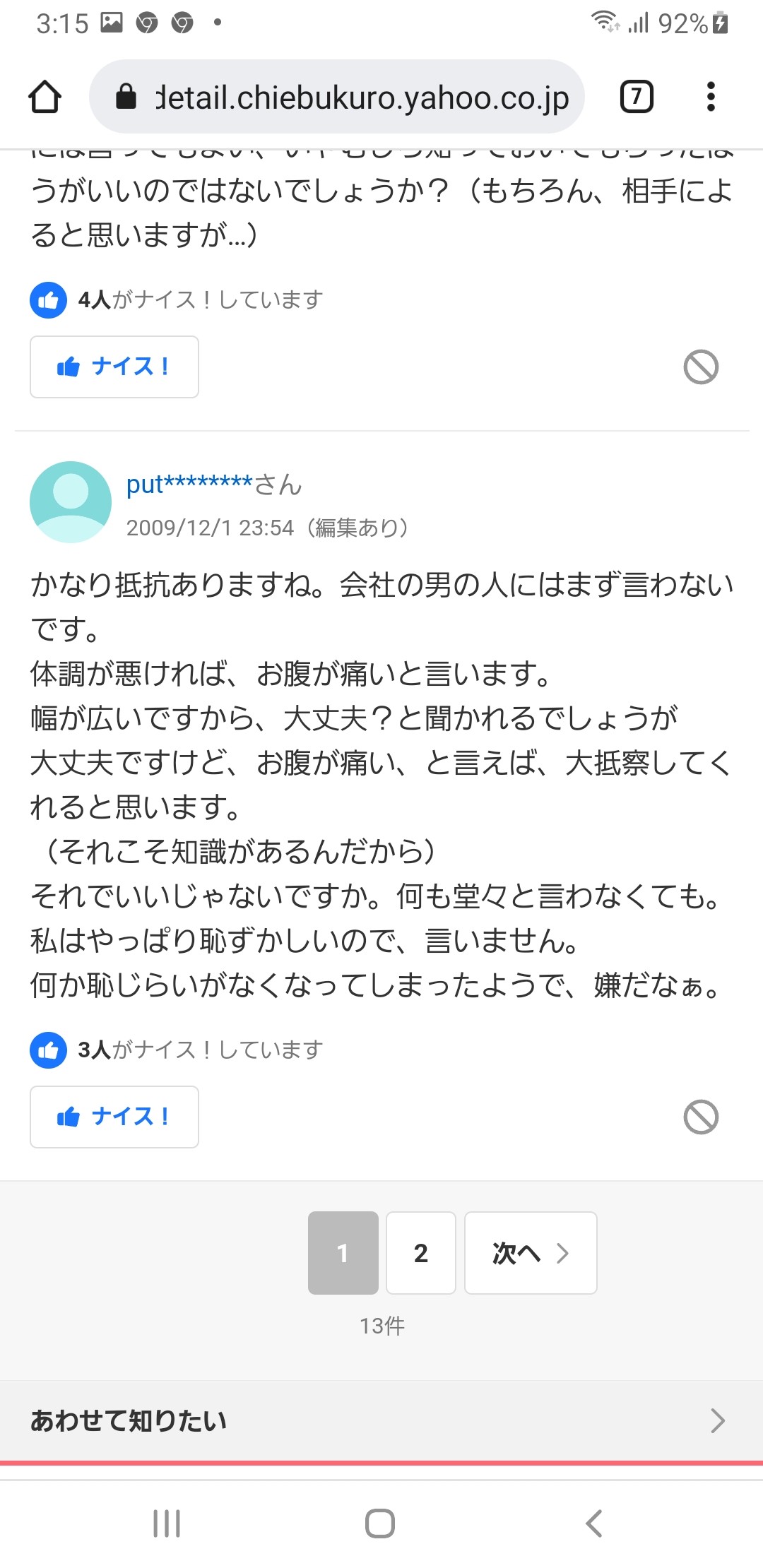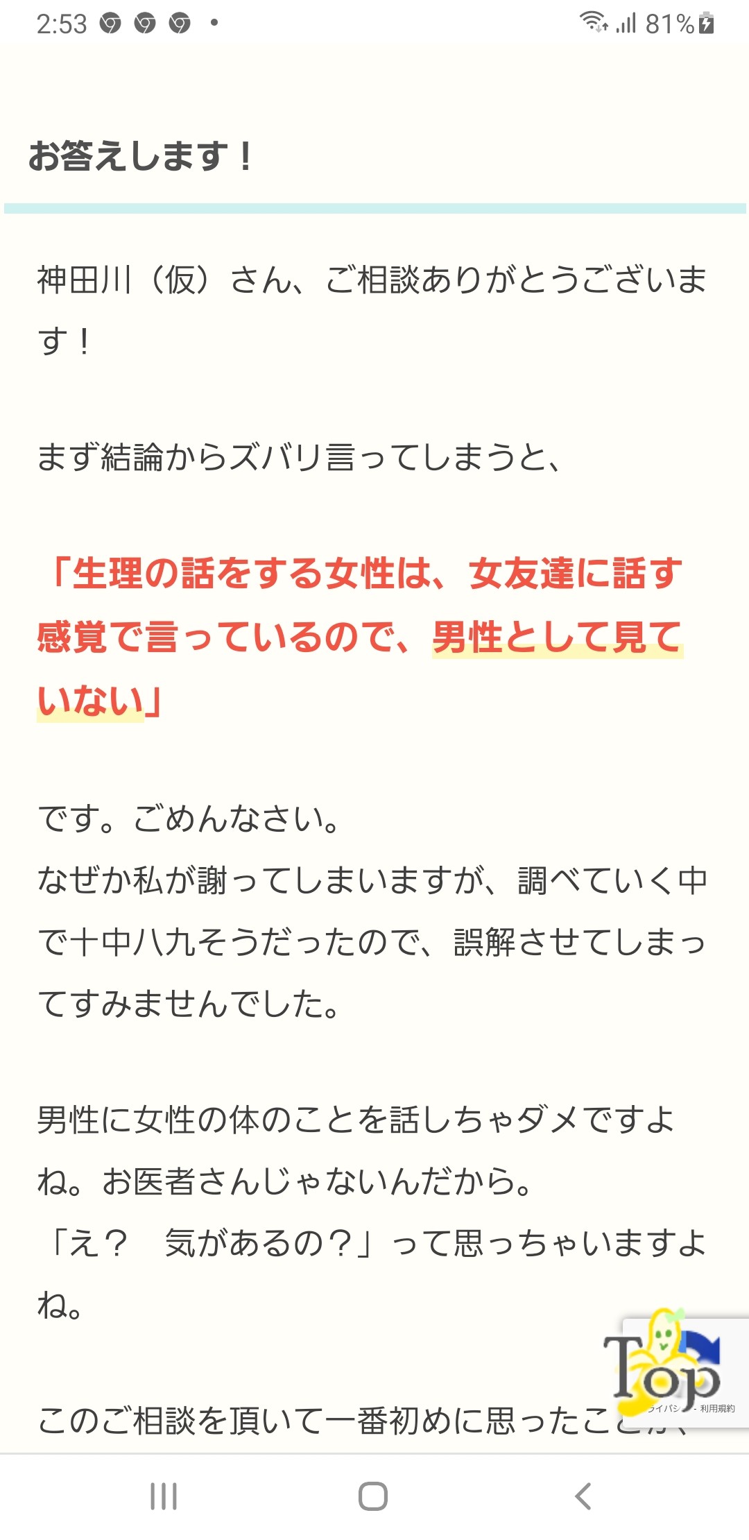 ある男が、職場で中途採用で入ってきた女複数に生理の話をされましたって言ってて、その流れなんだけど。