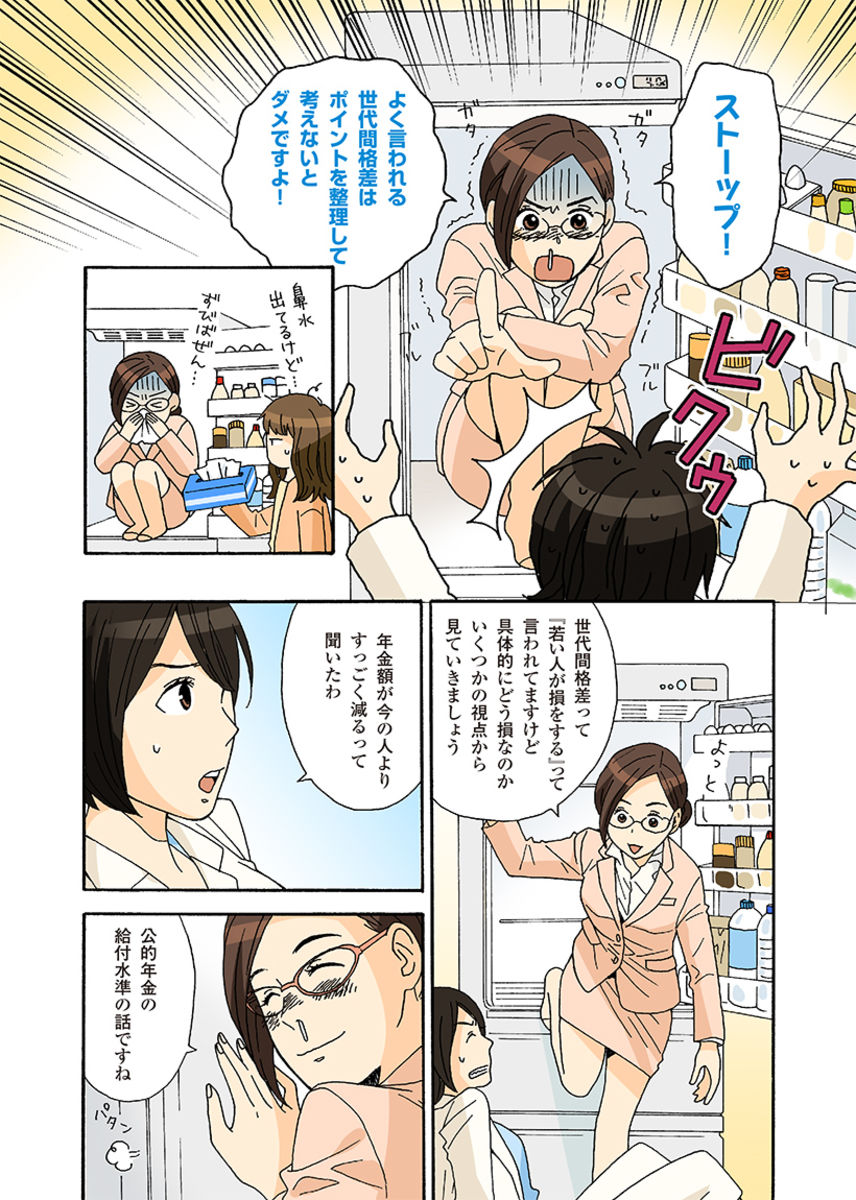 いま、若い方々を中心に、公的年金の世代間格差に関する意見が聞かれます。いくつかの視点から、マンガと図で分かりやすく解説します。