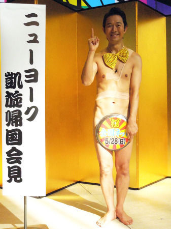 ピン芸日本一決定戦「R―1ぐらんぷり2017」を制したアキラ100%(42)が14日、大阪市内で優勝記念特番「裸一貫!ニューヨークに行って参りました!」(フジ系、28日深夜0・30)の報告会見を行った。  優勝以来「仕事量は100倍になった」とうれしい悲鳴を上げ、週5で入っていたスポーツクラブのバイトを卒業したことを報告。おかげで“相方”の100均で買ったお盆はボコボコで、特番の中で「これが1000枚ぐらい買えるモノを新調してもらった」とご機嫌だった。  ニューヨークでは街中でも、ほぼ裸のスタイルで闊歩(かっぽ)したが「よっぽど変なヤツだと思われたのか、まったくトラブルに巻き込まれなかった」と苦笑い。「ニューヨークの次はロス、ハリウッド。カンヌ、ベルリン…」と名だたる映画祭が行われる都市をあげ世界進出をぶち上げた。