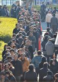 法廷は撮影禁止のため、この日、神戸地裁には早朝から約300人の報道陣が集まり、地裁を完全包囲。神戸地裁が発布した「勾引状」によって前日25日に身柄拘束された野々村被告が“強制出廷”させられる姿をキャッチしようとした。地裁上空にはヘリが飛んだ。