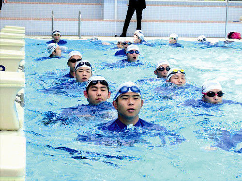 同校では、年間116日の水泳授業を行い、夏には約5・5キロを泳ぐ遠泳訓練も実施し、一定の成績を取らなければ、卒業が認められない。 しかし、まったく泳げないか、もしくはほとんど泳げない状態で入学する学生も増加。 15年度は入校者約560人のうち約4割の230人が泳げなかったという。海保入学生4割泳げず、プール温水化で冬も特訓