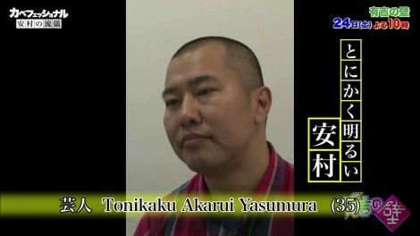 動画ニュース| ピン芸人のとにかく明るい安村が、24日に放送される日本テレビ系バラエティー『有吉の壁8』(後10:00)に出演。これにさきがけ、オリジナル動画『カベフェッショナル〜若手芸人の流儀〜』が3日間連続で配信され、安村が番組への意気込みを語った。 いま話題の次世代芸人たちが、有吉をはじめとした先輩芸人たちの“壁”に体当たりで挑...